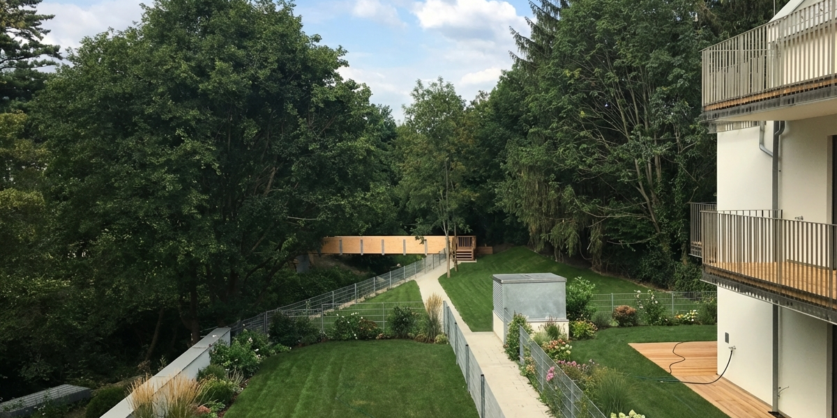Im Wohnhaus in der Mauerbachstraße 28 stehen Eigentumswohnungen im 1.OG zur Verfügung. Einzigartig in Wien sind die weitläufigen Grünflächen und der Mauerbach, der direkt durch das Grundstück fließt. Zu jeder Wohnung gehört ein eigener Garten.