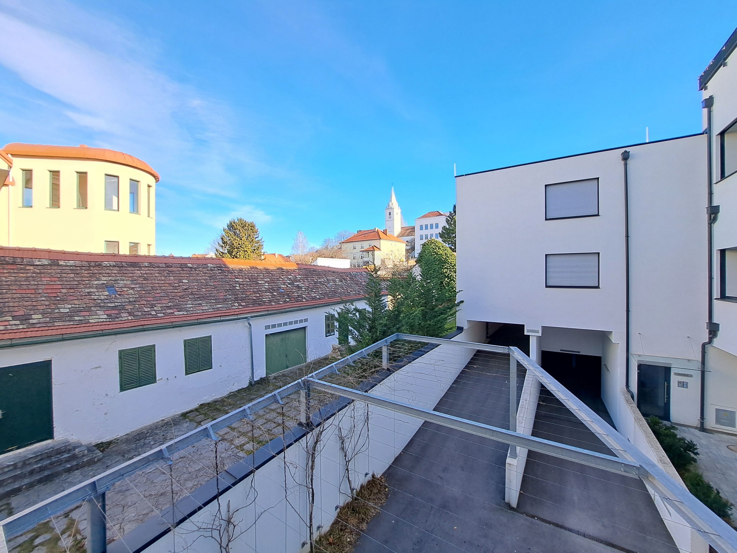 Die Büros liegen in ruhiger Lage im hinteren Teil des Gebäudes mit Blick auf den Innenhof. Der Zugang zu den Büros erfolgt über den Innenhof. Dieser ist über eine Durchfahrt mit Schrankenanlage und Tor mit der Gustav-Degen Gasse bzw. dem Hauptplatz verbunden. Parkplätze können in den beiden Parkebenen zugemietet werden.